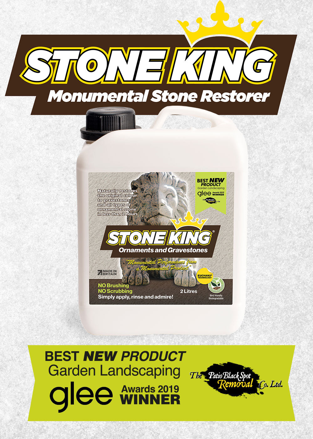 Launched at GLEE as the first product of its kind for gently restoring grave stones and garden ornaments. Stone King® was duly crowned Winner of BEST NEW PRODUCT in the Garden Landscaping section by the panel of Judges.